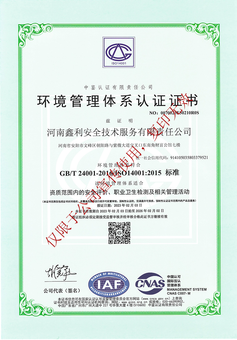 環(huán)境管理體系認(rèn)證證書