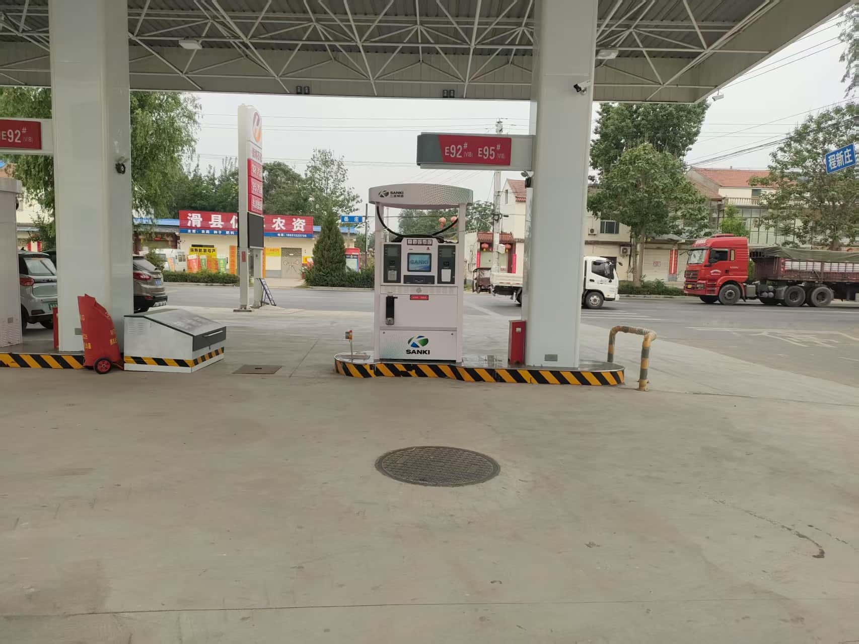 項(xiàng)目簡(jiǎn)介 | 該站坐東朝西,占地面積1500m2,東側(cè)為民房,西側(cè)為S213,南側(cè)為民房,北側(cè)為小路。該站取得有《營(yíng)業(yè)執(zhí)照》、《安陽(yáng)市商務(wù)局文件》、《加油站建設(shè)用地意見(jiàn)書(shū)》、《河南省企業(yè)投資項(xiàng)目備案證明》、《危險(xiǎn)化學(xué)品建設(shè)項(xiàng)目安全設(shè)施設(shè)計(jì)審查意見(jiàn)書(shū)》、《生產(chǎn)經(jīng)營(yíng)單位生產(chǎn)安全事故應(yīng)急預(yù)案?jìng)浒傅怯洷怼返茸C件、主要負(fù)責(zé)人和安全管理員取得應(yīng)急管理部門(mén)頒發(fā)的考核合格證,站內(nèi)加油工經(jīng)內(nèi)部培訓(xùn)及考核后上崗。 建設(shè)概況:站內(nèi)設(shè)施按功能主要分為輔助服務(wù)區(qū)、作業(yè)區(qū)。 新建站房位于站區(qū)東側(cè),耐火等級(jí)為二級(jí);站房西側(cè)為加油區(qū),新建鋼網(wǎng)架罩棚一座,罩棚投影面積為308㎡,罩棚下設(shè)自吸式加油機(jī)3臺(tái),罩棚行車(chē)道下為儲(chǔ)油罐區(qū)。設(shè)置埋地雙層(S/F)油罐3座(其中20m3汽油罐2座、20m3柴油罐1座、S/F),儲(chǔ)油總?cè)莘e為50m3(柴油折半計(jì)入)。密閉卸油口箱設(shè)在加油機(jī)附件,汽油、柴油通氣管沿罩棚立柱分開(kāi)敷設(shè)且高出罩棚2.0米。 | |||